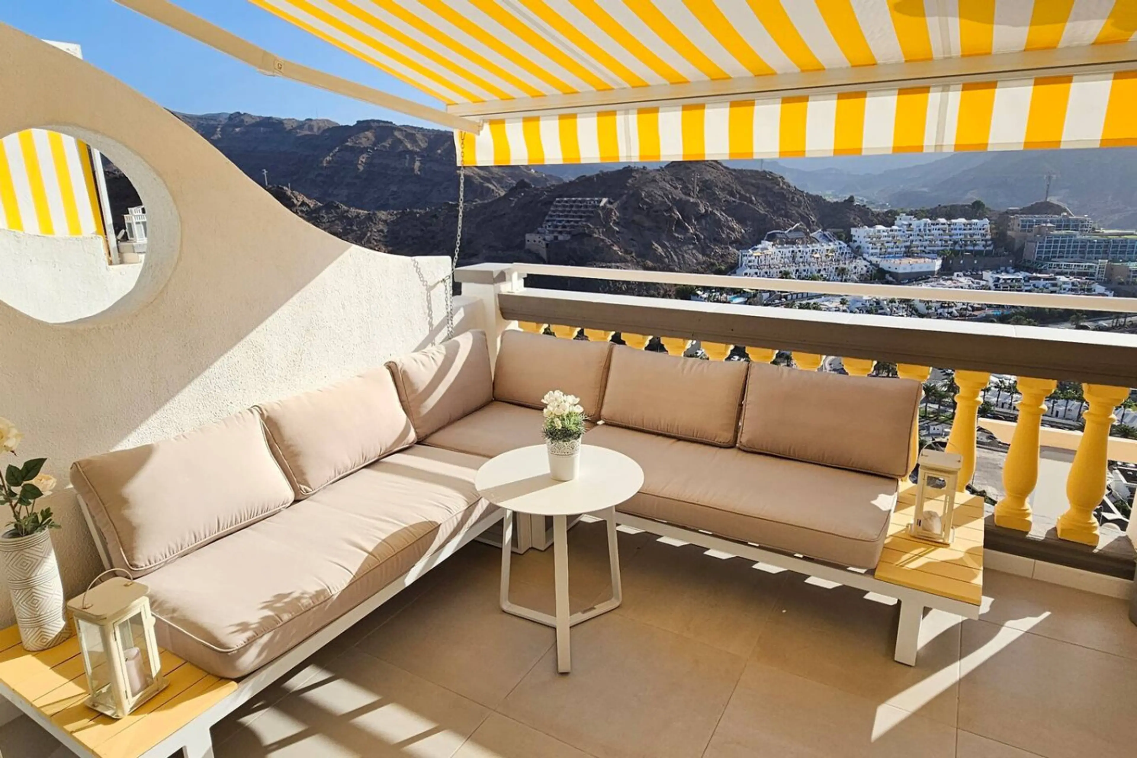 Wunderschön renovierte Wohnung mit einem Schlafzimmer in Playa del Cura mit einer geräumigen Terrasse mit atemberaubendem Blick auf den Atlantik. Voll ausgestattet mit Waschmaschine, Smart-TV und Highspeed-Glasfaser-Internet im gesamten Resort. Großes Doppelbett im Schlafzimmer und ein bequemes Schl...